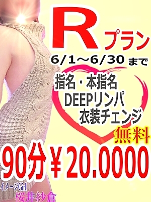 ☆6月限定イベント☆ R(ライト)プラン ・90分セット・ DEEPリンパ+衣装+指名・本指名セット コミコミにて 20000円ジャスト 対象セラピスト ★桜井紗倉★ ★藍沢のあ★ 是非ご利用くださいね♪ =ご利用の注意事項= ※ご予約の際にお伝え下さい。ルーム入室後・出張派遣完了後にセラピストへ伝えるのは今回対象外とさせて頂きます。必ず[[指名無料]]と[[予約受付時]]にお伝え下さい※