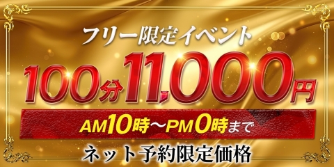 これがほんとの赤字覚悟の設定料金! 朝10時から夜24時まで限定 通常100分16,000円からなんと5000円割引! フリー限定 100分11,000円 この機会に是非ご利用ください♪